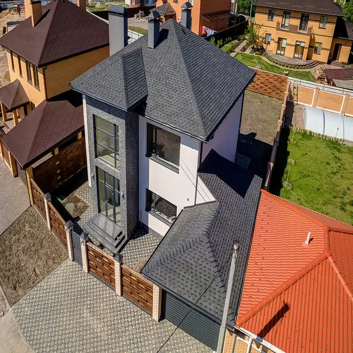 Гибкая черепица может применяться не только на малоэтажных жилых зданиях, но и при строительстве административных, жилых многоэтажных и других типов зданий.
